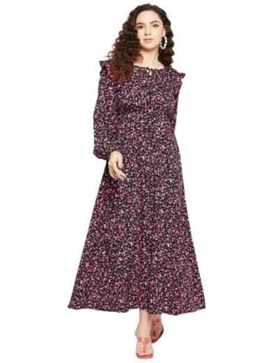 Sheetal Associates Women's Casual Flower Print Puff Sleeves Maxi Dress - Pack of 1