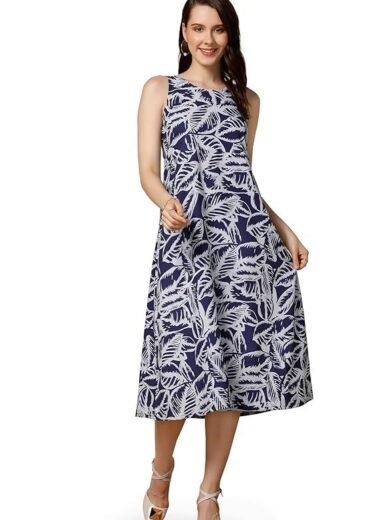 Fashion Dream Women’s Cotton Blend Printed Calf Length Dress|Printed Dress|Midi Dress|A-line Dress|Printed Calf Length Dress