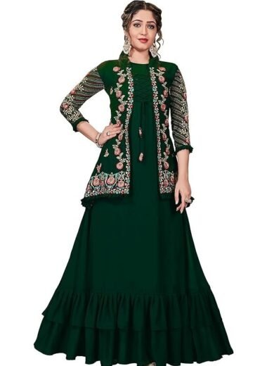 Miss Ethnik Women's Faux Georgette Semi Stitched Top With Faux Georgette Jacket Solid Flared Top Dress Material
