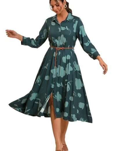 Women's Georgette Dresses Floral Printed One Piece Stylish Long Maxi Western Frock Midi Dress for Women (Puffed Sleeves)