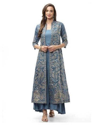 BIBA Women Straight Cotton Fusion Wear 3 Piece Set