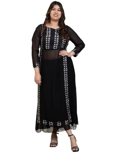 DEEBACO Emroidered Print Rayon Kurti & Georgette Palazzo Indo Western Plus Size Co-Ord Set for Women's|Boat Neck Full Sleeves|Ladies Party Outfits Summer Collection Stylish Fusion Wear