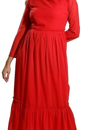 DEEBACO Solid Smocked Rayon Women's Plus Size Tiered Dress|Halter Neck Short Bell Sleeves|Summer Western Party Casual Wear Stylish Dress Collection for Ladies