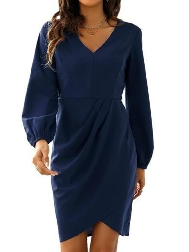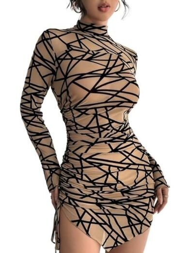 Mastyle® Women’s Side Drawstring Stand-Up Collar Mini Dress | Long Sleeve | Slim-Fit & A-Line Design | Soft & Breathable Fabric | Stylish & Comfortable